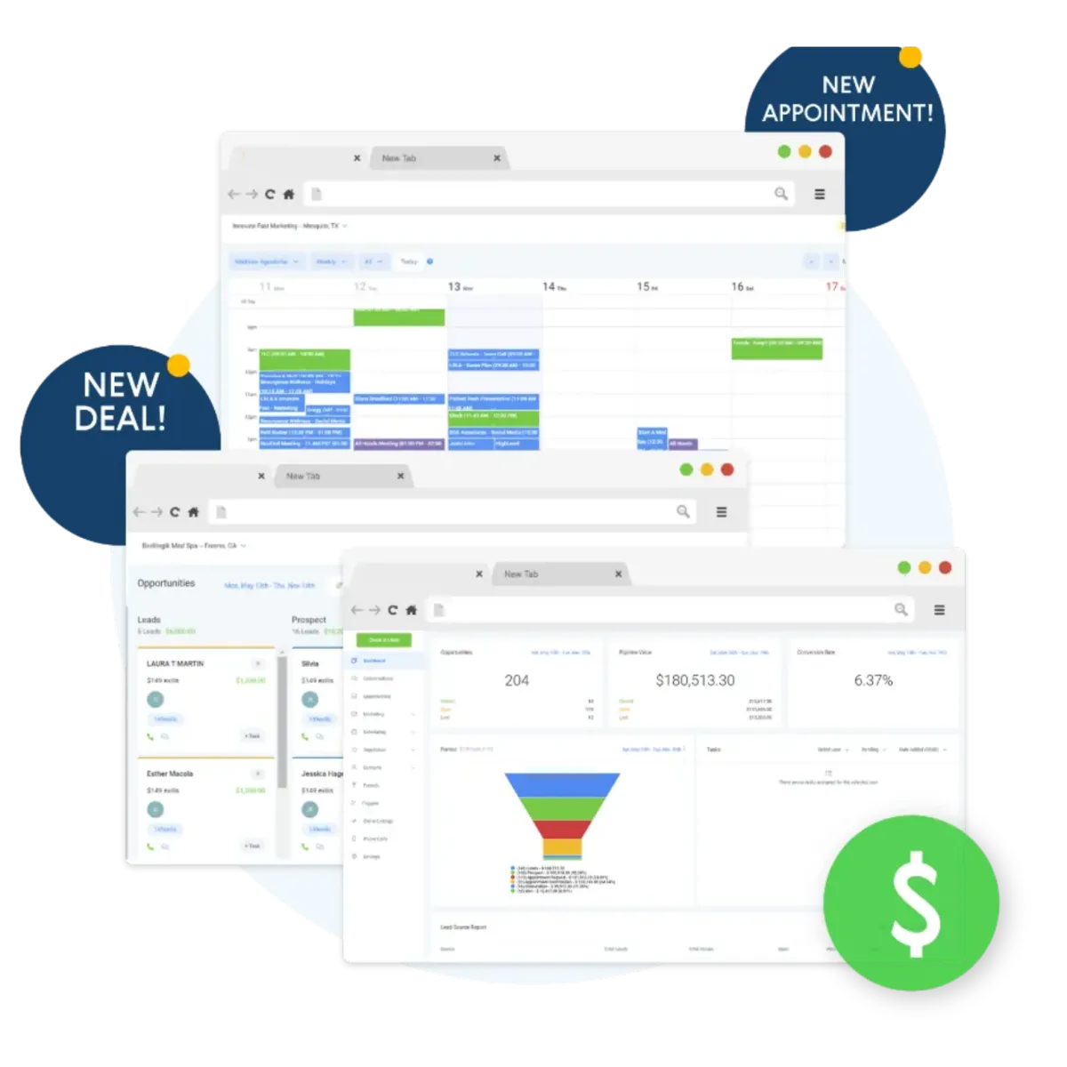 Establish connections with leads and clients through various channels, including texting, live chat, bulk messaging, Google My Business, and Facebook messages.
