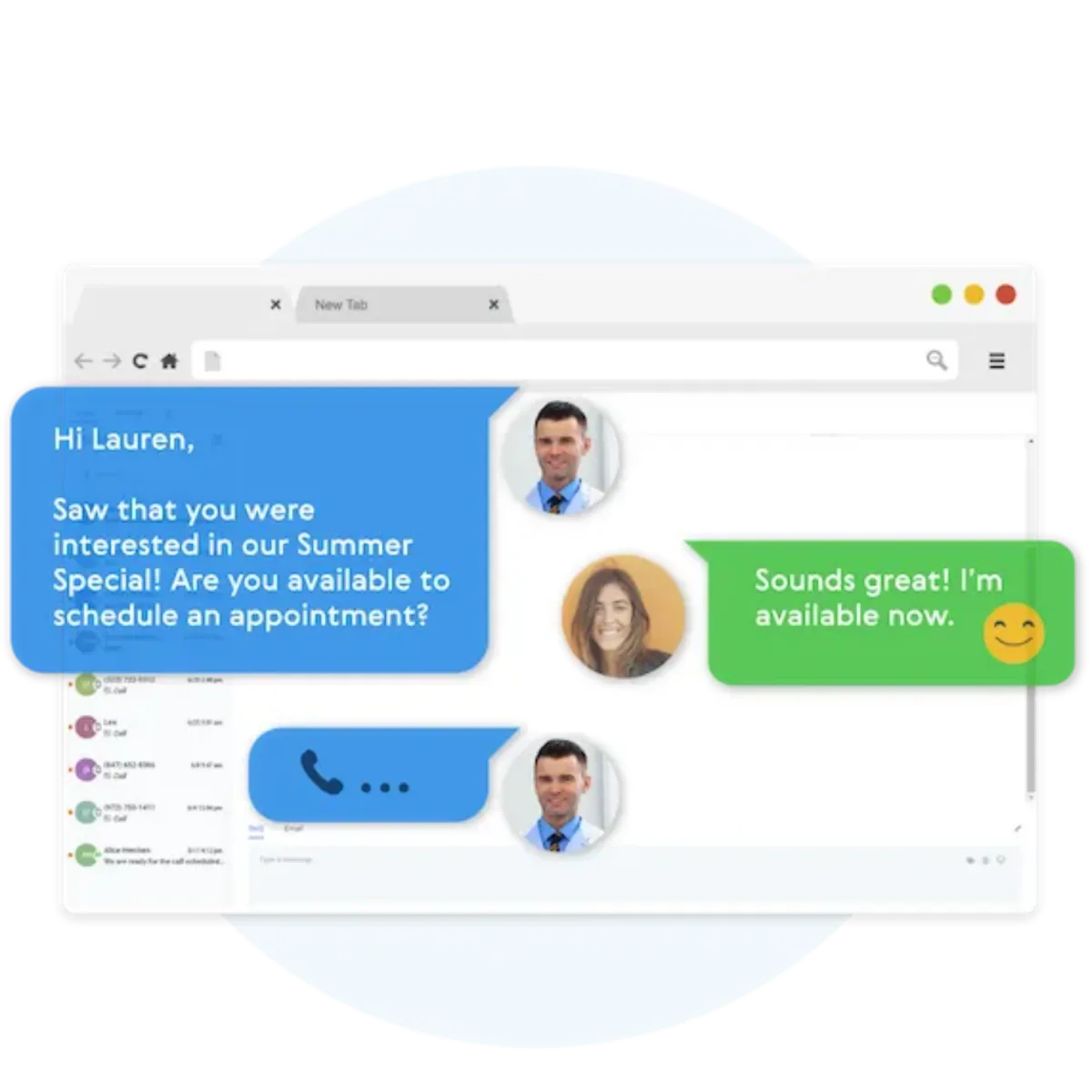 Implement automated follow-ups to inquire about your customers' well-being, request referrals, and extend invitations for business reviews. Additionally, leverage website automation to send a text to previous customers exploring your site, initiating a conversation and creating a warm environment for potential re-engagement